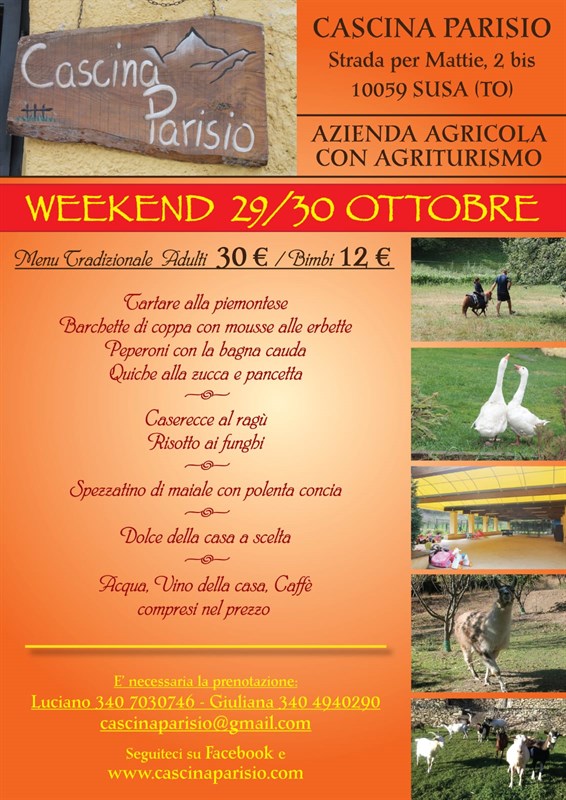 WEEKEND 29/30 OTTOBRE - MENU TRADIZIONALE ADULTI 30 € BIMBI 12 €