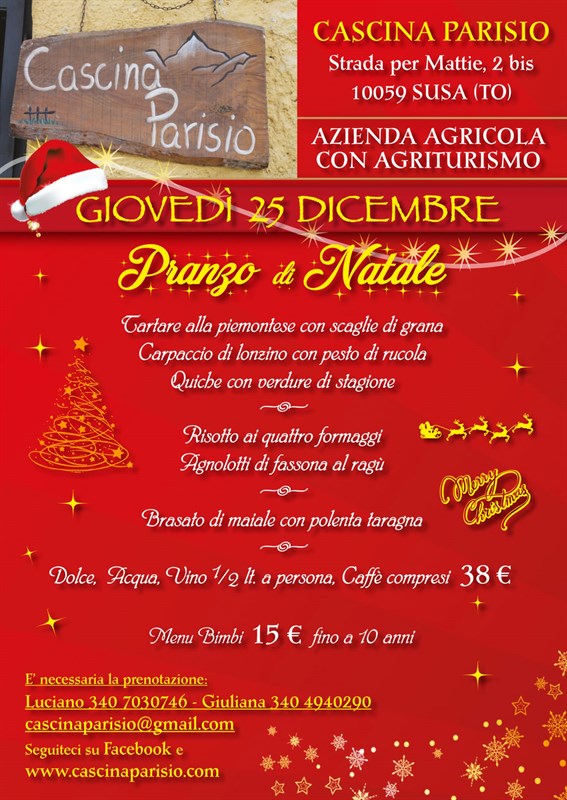 GIOVEDI' 25 DICEMBRE - PRANZO DI NATALE - ADULTI 38 € BIMBI (fino a 10 anni) 15 €